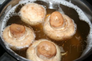 Бульон посолить, прокипятить в течение 7- 10 минут, после чего соединить с обжаренными грибами.